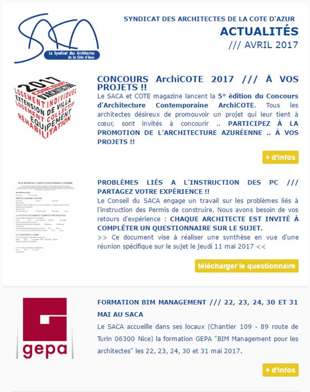 ACTUALITÉS /// AVRIL 2017 Petit tour d’horizon des actualités liées à la Profession : CLIQUEZ ICI POUR LA NEWSLETTER EN LIGNE