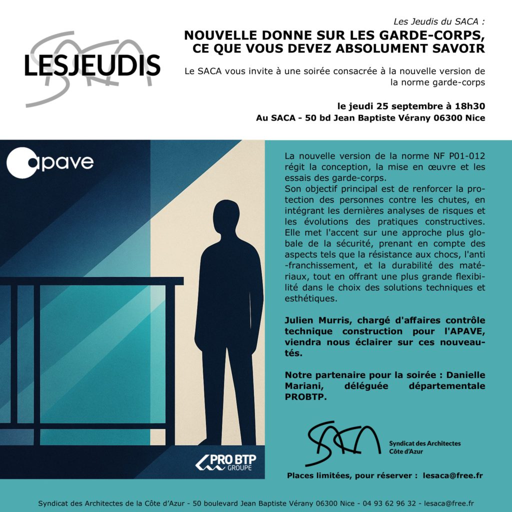 Le SACA vous invite à une soirée consacrée à la nouvelle version de la norme garde-corps le jeudi 25 septembre à 18h30 au SACA.