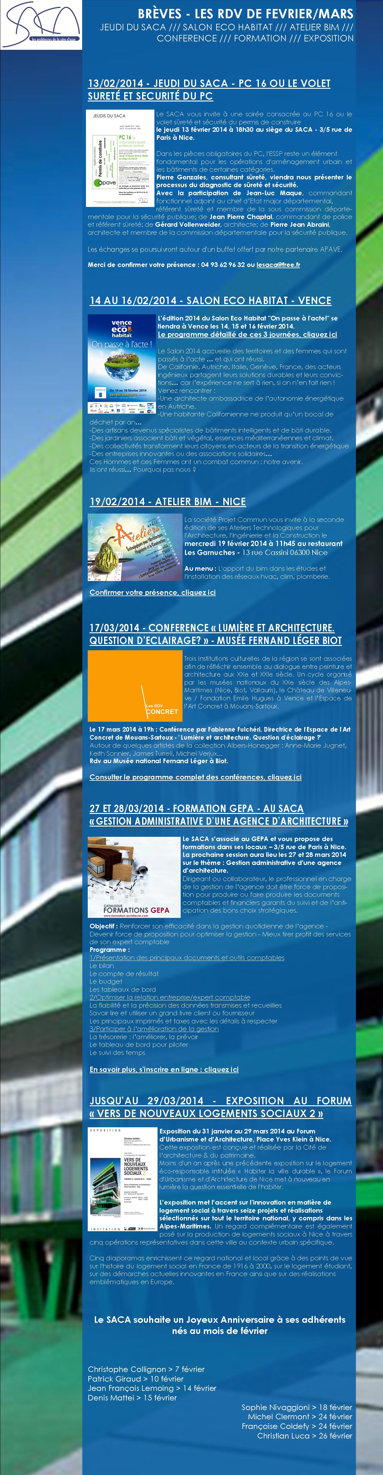 - 13/02/2014 – Jeudi du SACA “PC 16 ou le volet sûreté et sécurité du PC” – 18h30 au SACA