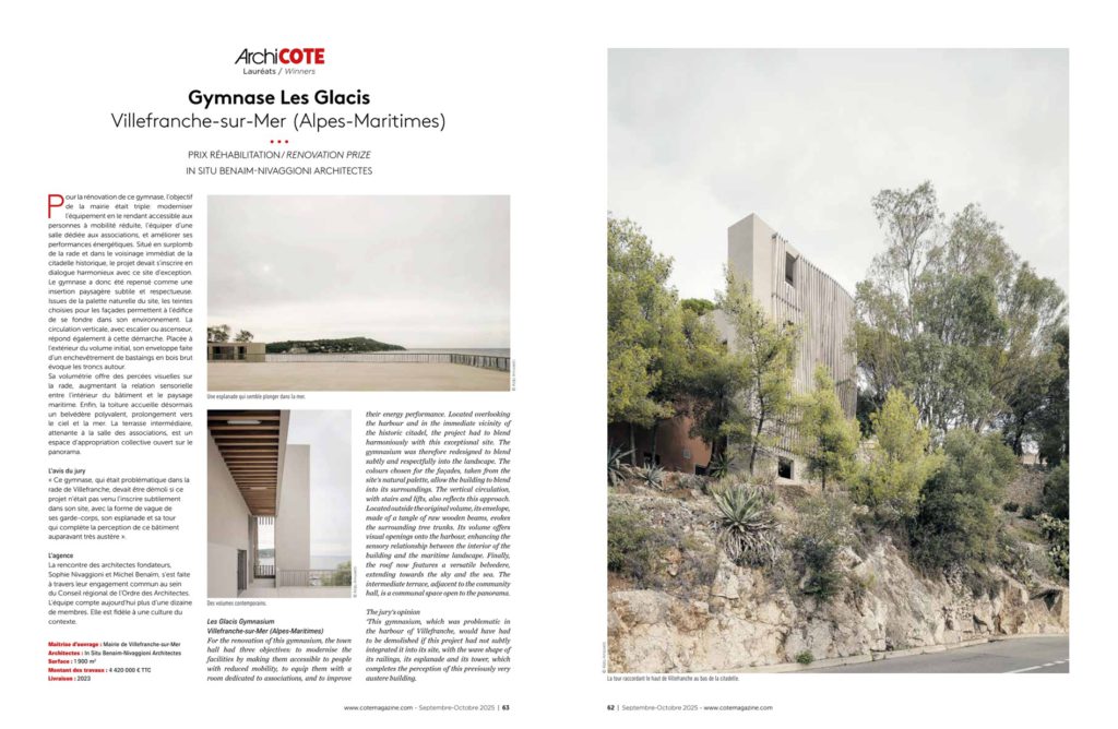 PRIX REHABILITATION : IN SITU ARCHITECTES pour le Gymnase les Glacis à Villefranche sur Mer
