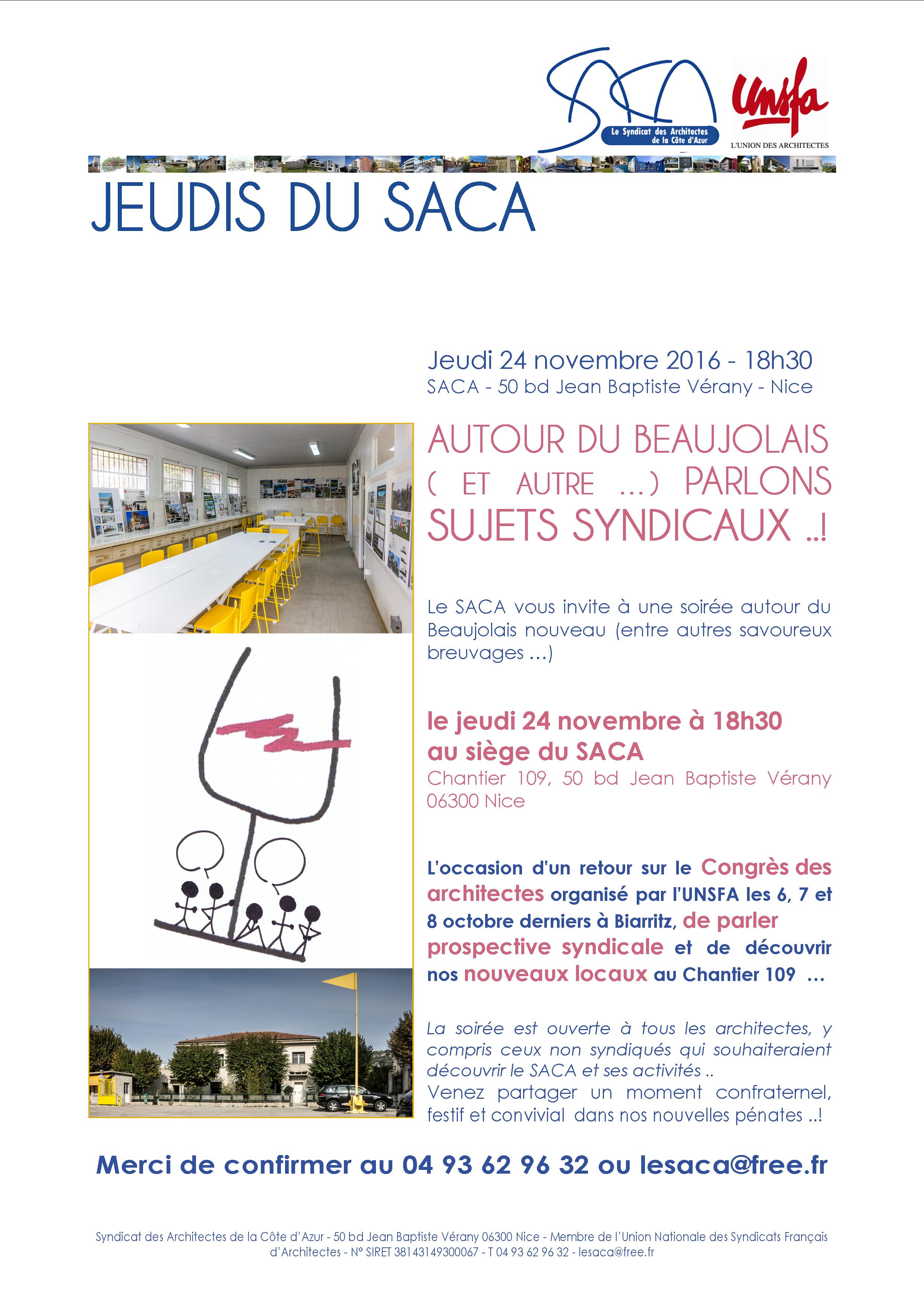 Le SACA vous invite à une soirée autour du Beaujolais nouveau (entre autres savoureux breuvages …) pour parler sujets syndicaux ..!