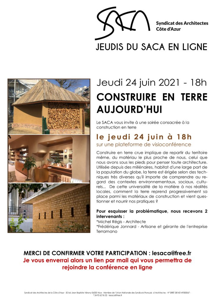 JEUDI DU SACA // CONSTRUIRE EN TERRE AUJOURD’HUI // 24 JUIN 2021