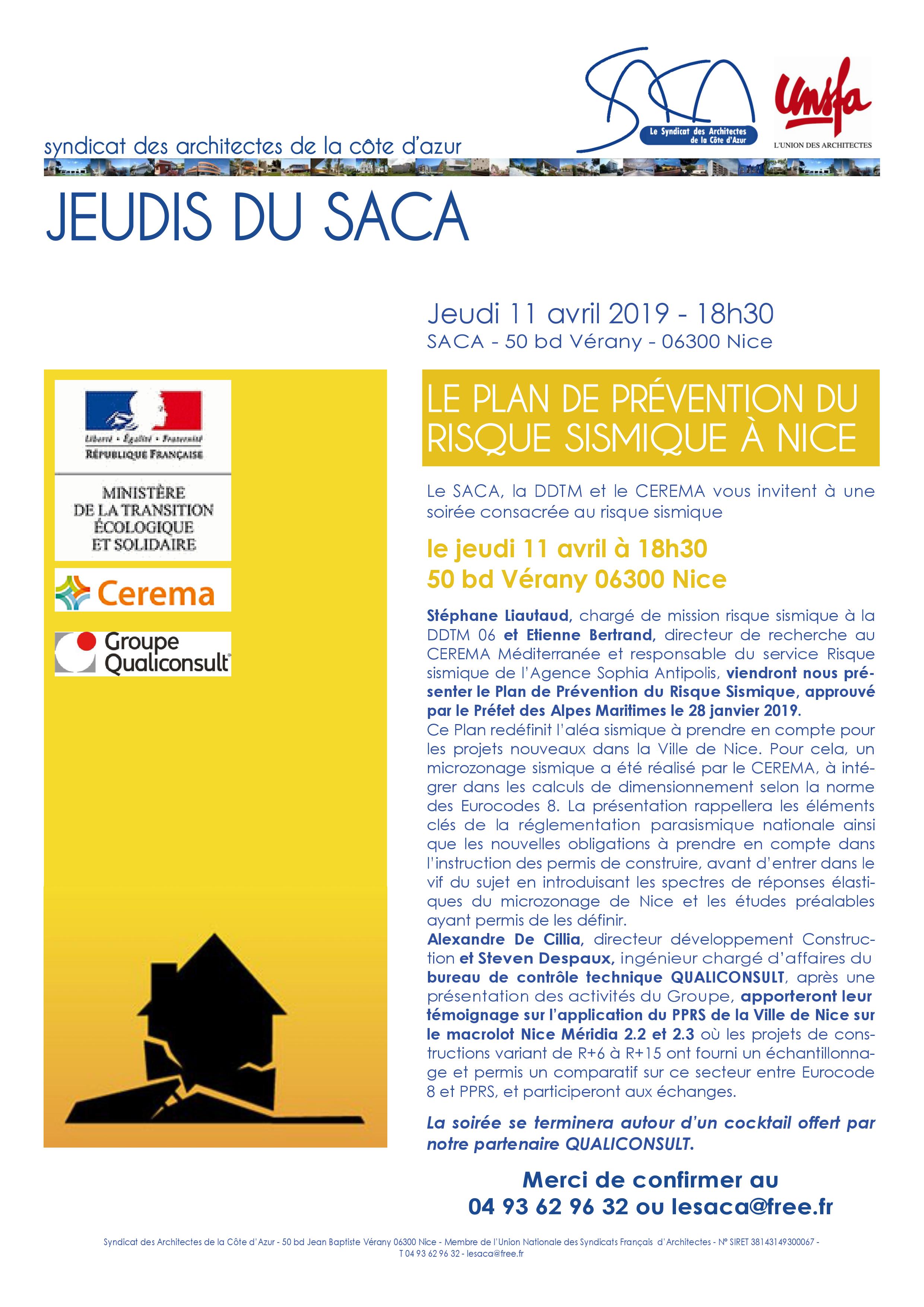JEUDI DU SACA /// PLAN DE PRÉVENTION RISQUE SISMIQUE /// 11 AVRIL 2019